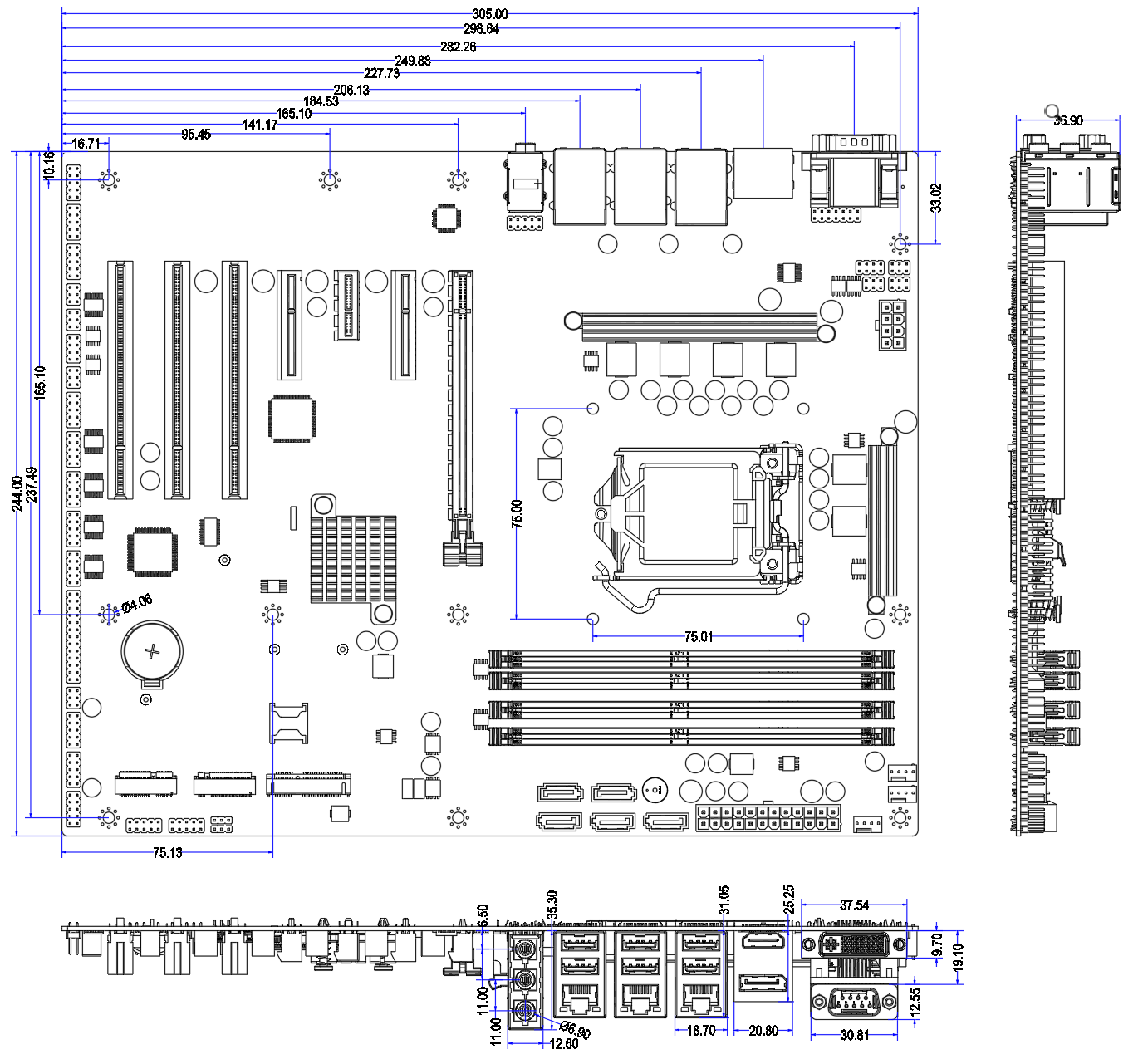 3*LAN(LAN1/LAN2为RTL8111H,LAN3为Intel I219V),6*USB3.0,1*DB9 COM |