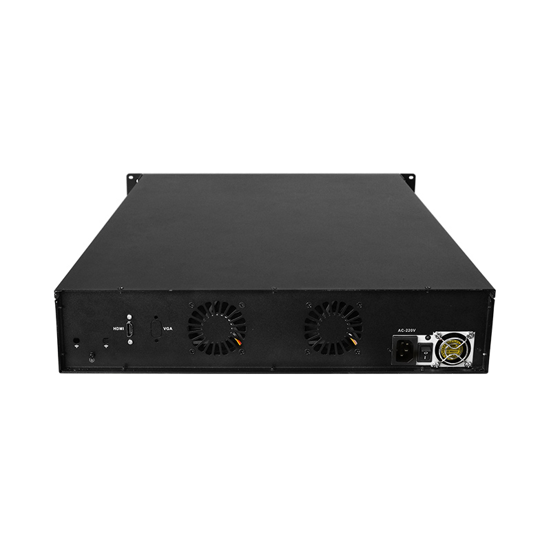 2 x 6025系统风扇(默认两个), 1 x 电源开关, 1 x HDMI接口,2 x天线(默认没有),1 x VGA(默认没有)