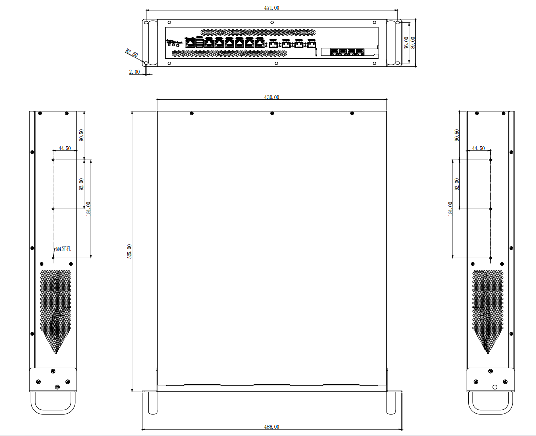 深525mm x 宽486mm x 高89mm ±2.0㎜(带挂耳尺寸)