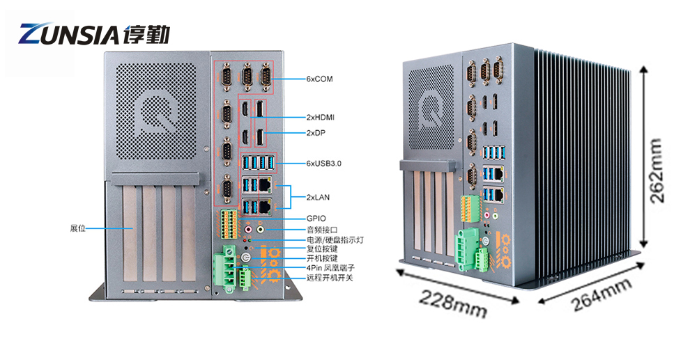Q-BOX-A1蘑菇视频APP黄机可搭载Intel 12/13/14代-S系列处理器,带有2个DDR5 SO-DIMM内存插槽,最大支持64GB;存储方面1个M.2 2280插槽,2个SATA3.0接口,1个2.5寸HDD接口;显示方面有2个HDMI接口和2个DP接口;此外还有凤凰端子电源接口、8个USB接口、6个COM口、TPM等扩展接口;支持运行Windows和Linux系统,可在-20℃至+60℃的宽温环境下全天候工作。