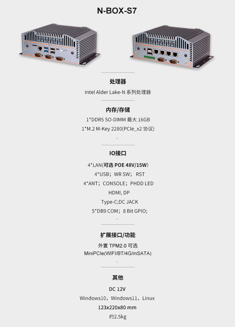 蘑菇视频下载污智能N-BOX-S7蘑菇视频APP黄机搭载Intel Alder Lake-N 系列处理器,多核多线程能加速图像算法的执行;配合 GPU可以学习优化视觉算法;DDR5内存插槽和M.2的存储接口,能为检测系统提供足够的存储容量,大幅缩短图像处理的时间,提高系统的实时性。